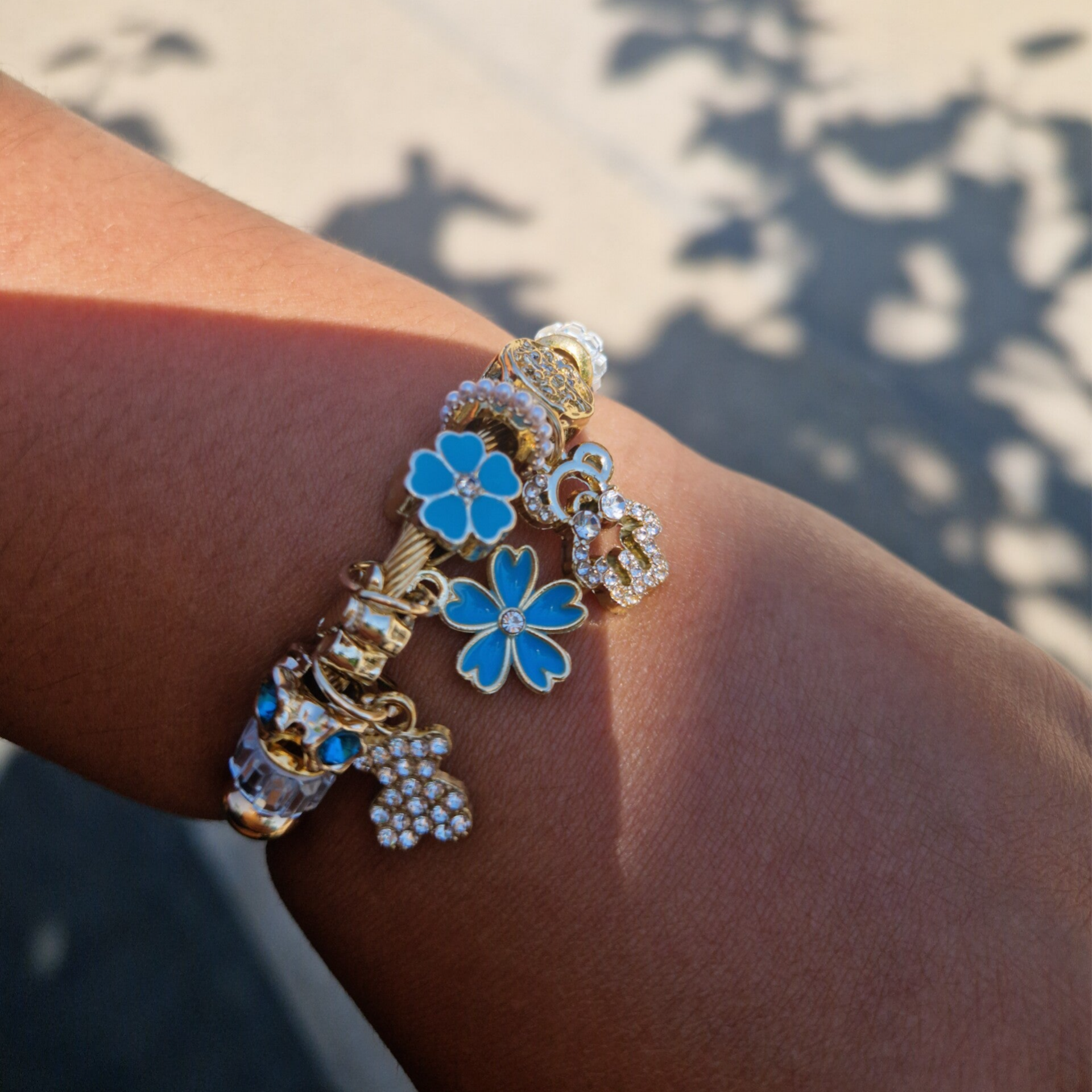 Prachtig armband met bedeltjes. Stainless steel geen echt goud. Handmade waardoor niet alle armbanden altijd hetzelfde zijn. Dit maakt het erg speciaal. Je kunt met de 2 kralen aan beiden uiteindes de bedeltjes vast zetten op 1 plek.