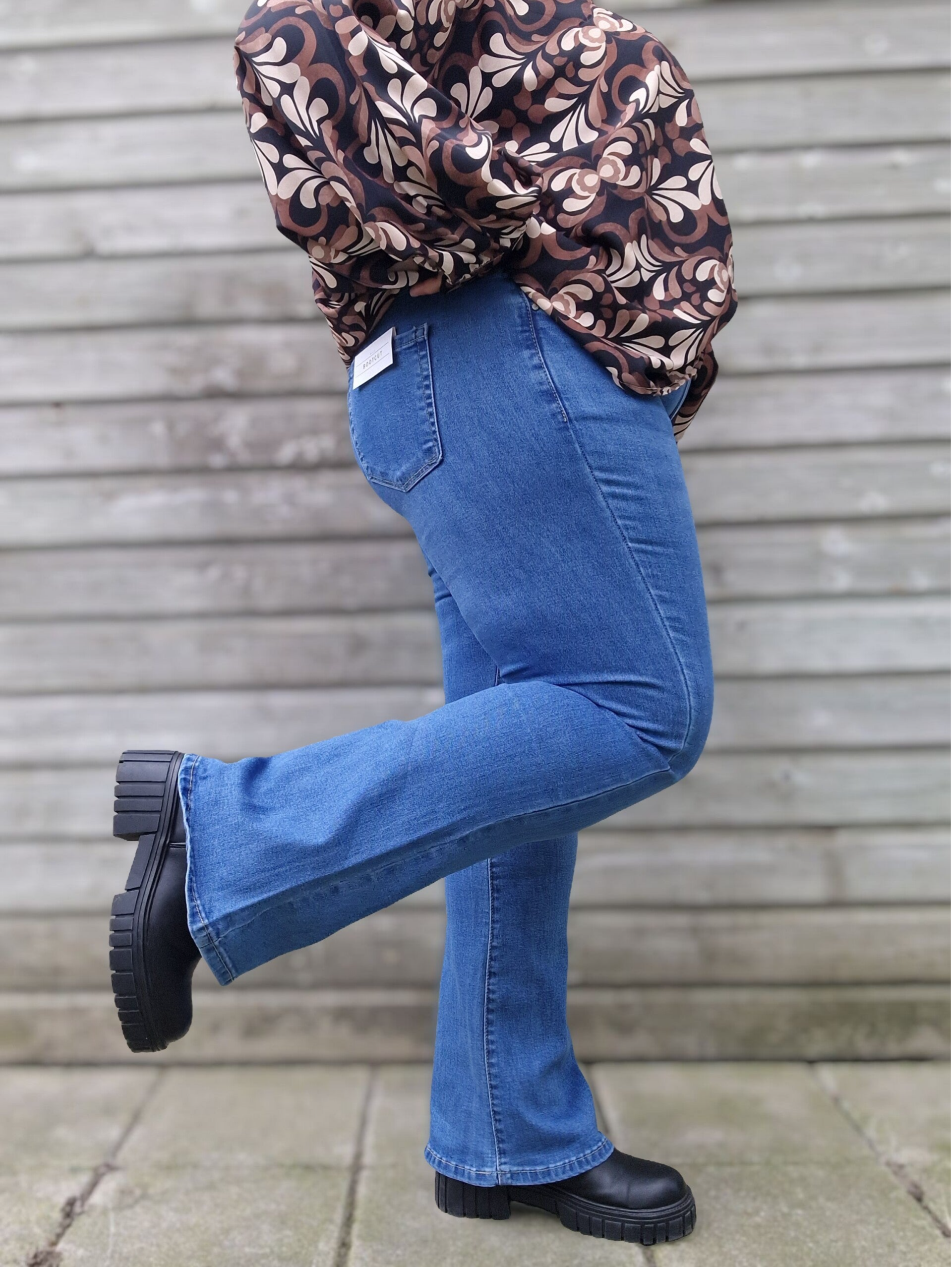 Onze hannah jeans flair heeft een prachtig model. Een echte flair die pas uitloopt na je knie. Heeft stretch en is high waist. Advies om 1 maatje kleiner te nemen.