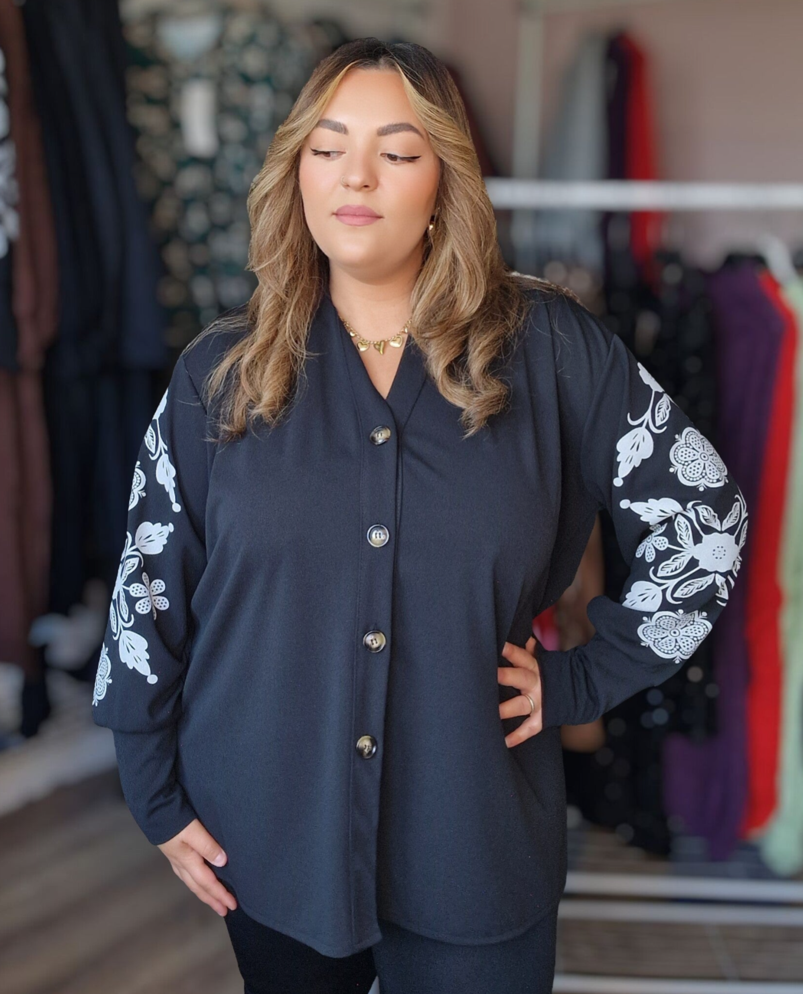 Onze prachtige Flower print blouse heeft een heerlijke stretch stof. En een super mooie kleuren combinatie. Te dragen vanaf een maat L tot een maat 48.