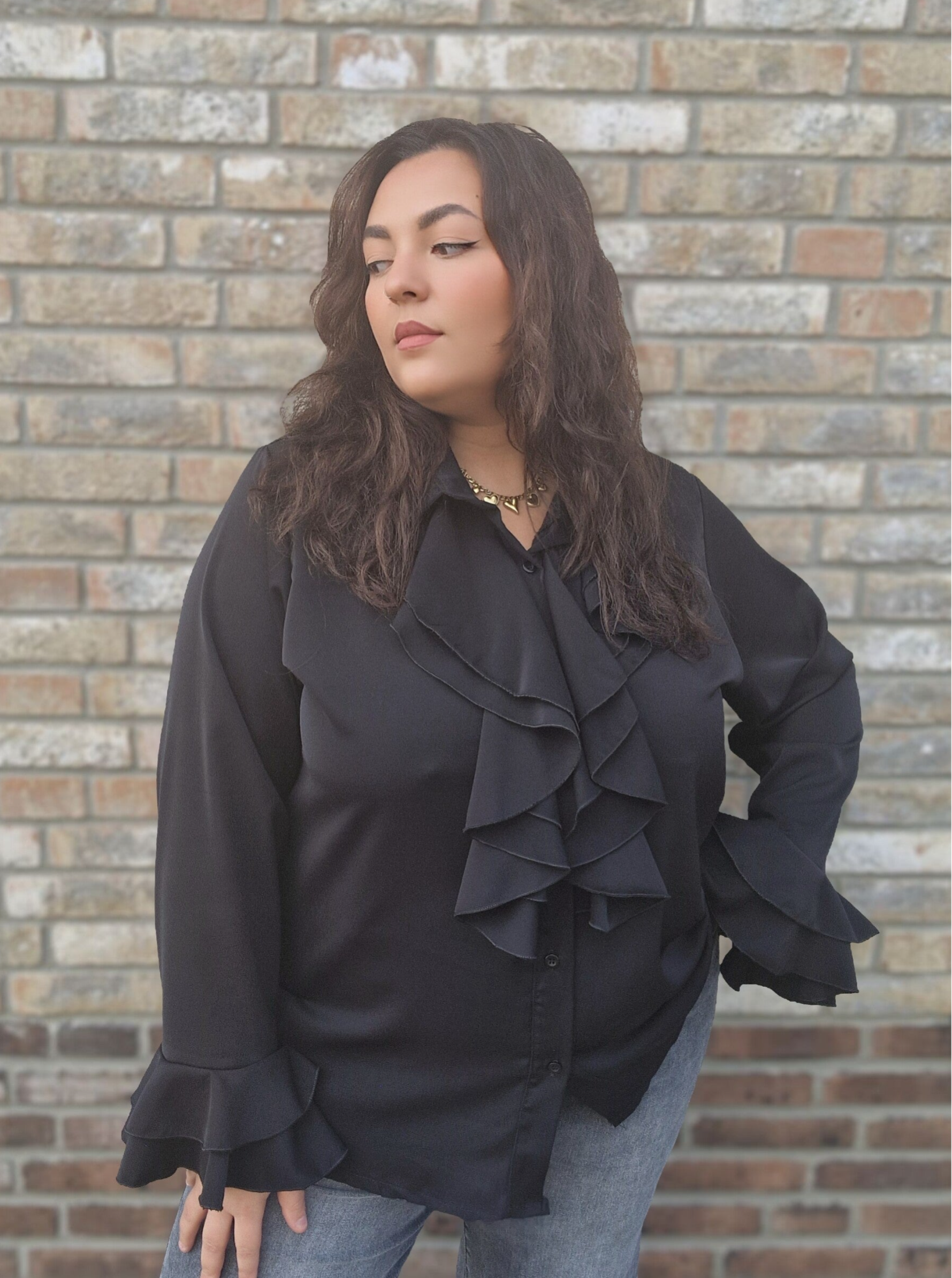 Onze prachtige sulky Levana blouse is te dragen vanaf een XL tot een maat 48. Ook mogelijk met grote cup. Heeft mooie uitlopende mouwen en heeft een prachtige glans.