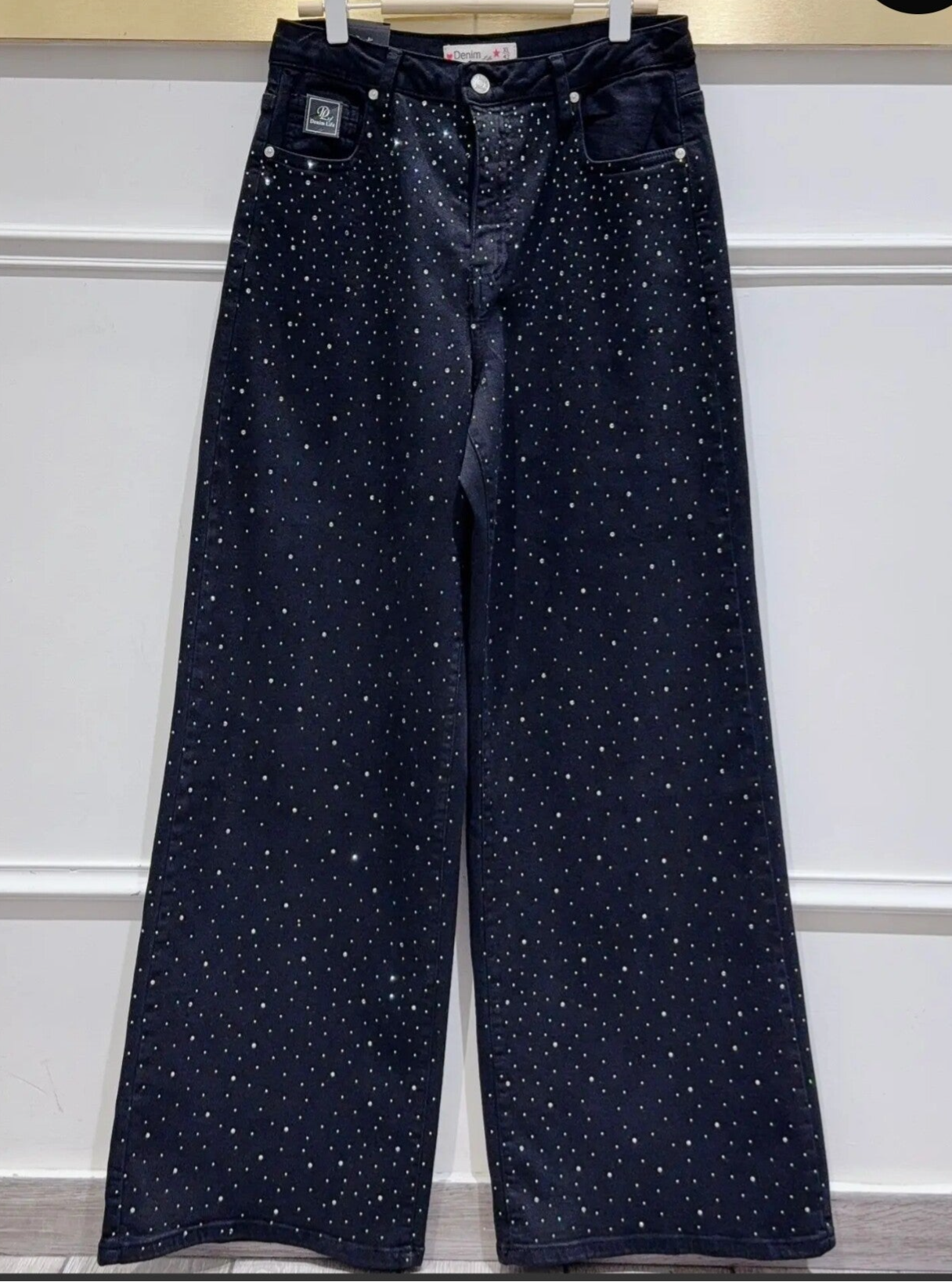 Rhinestone Jeans zwart high waist met stretch